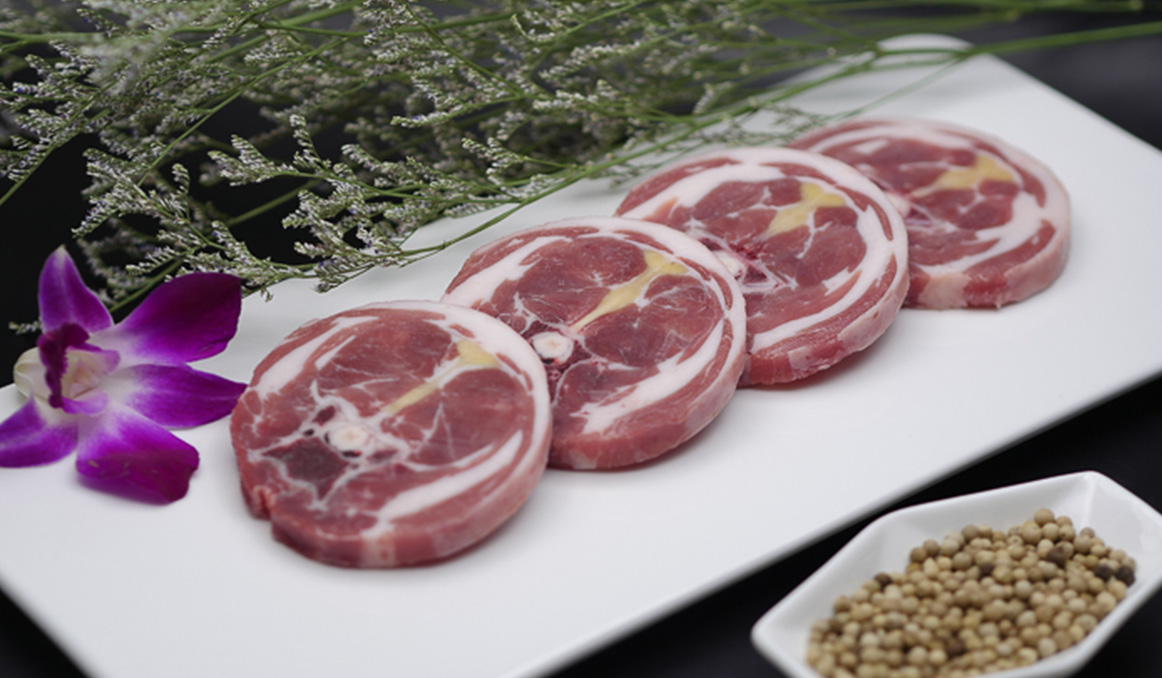 精選羔羊頸部,整形速凍后鋸切成0.8-1.2cm薄片,肉質鮮美中不乏筋道口感,適合煎烤、燉煮。