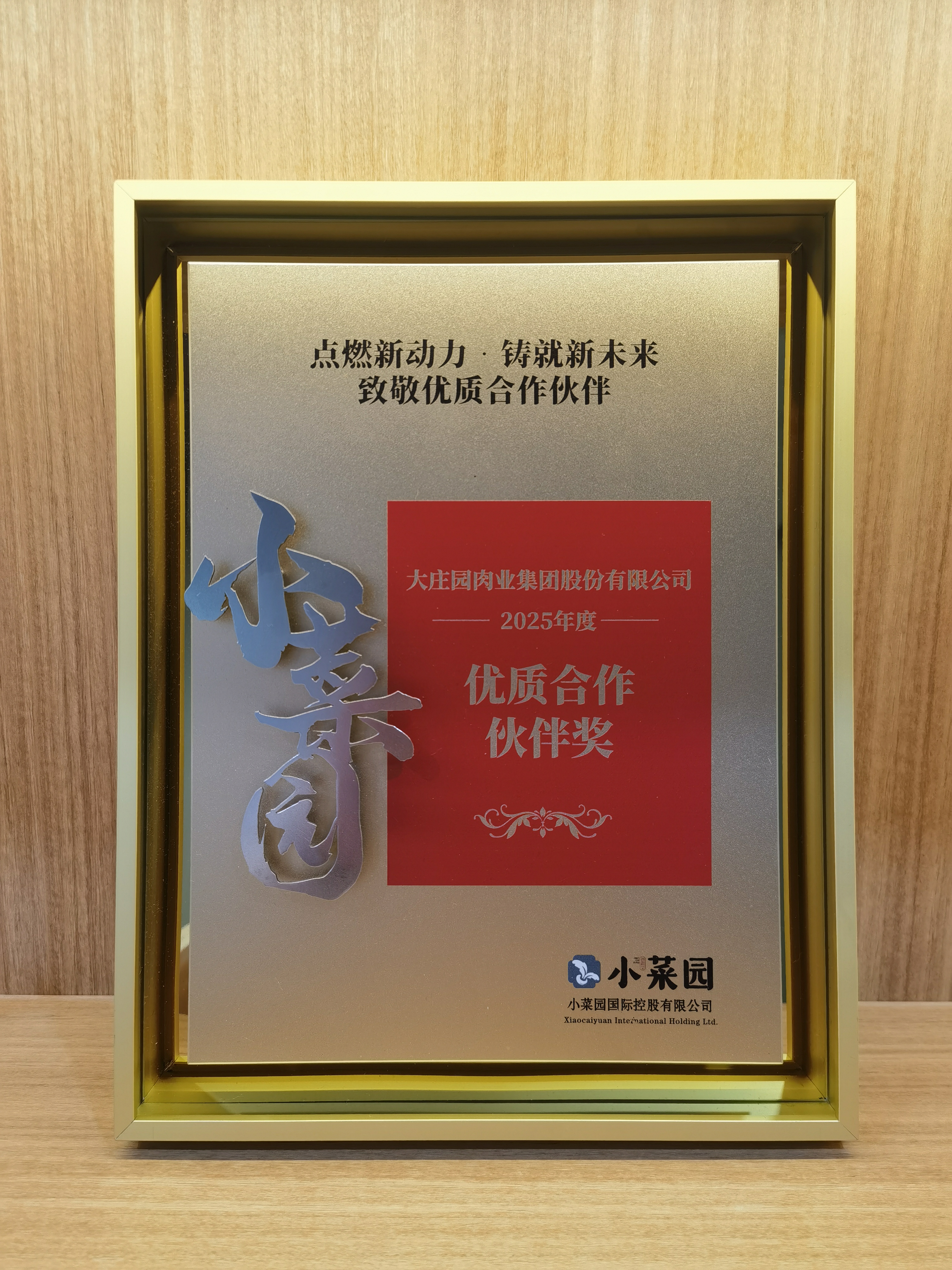 喜報:大莊園集團榮獲小菜園“2025 年度優質合作伙伴”獎