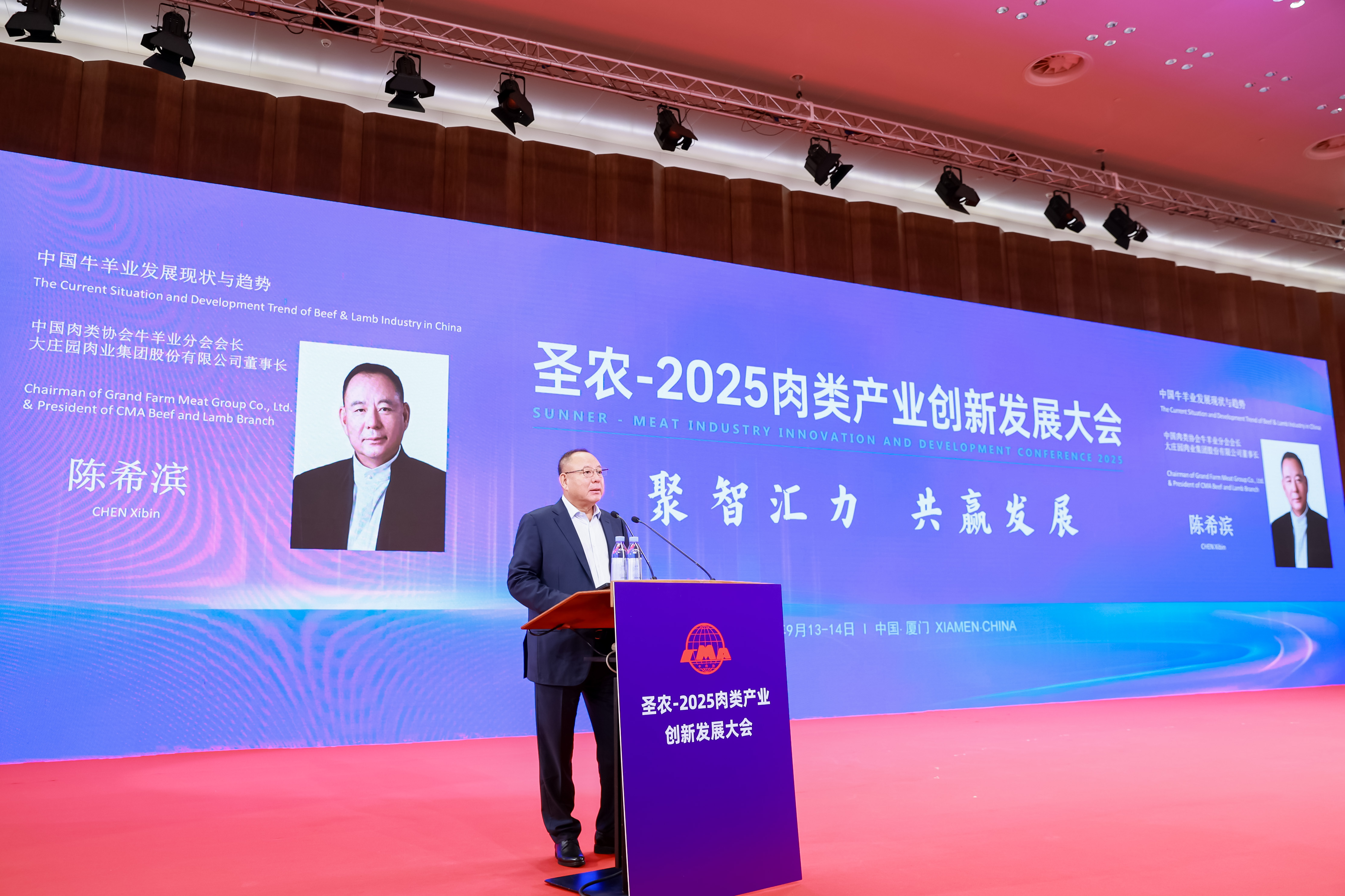 2025年9月13日—17日,2025中國國際肉類產業周在福建廈門成功舉辦。大莊園集團作為連續三屆中國牛羊肉協會會長單位,秉持行業引領者的責任與擔當全程深度參與,與政府主管部門代表、國際機構代表、國內外行業專家、中國肉業M50成員企業決策者聚焦產業發展政策、行業動態趨勢、市場消費變化、創新技術成果、合作共贏模式和服務貿易發展等方面,深入探討肉類產業高質量可持續發展的新機遇與新挑戰,為推動中國肉類產業高質量發展注入強勁動力。