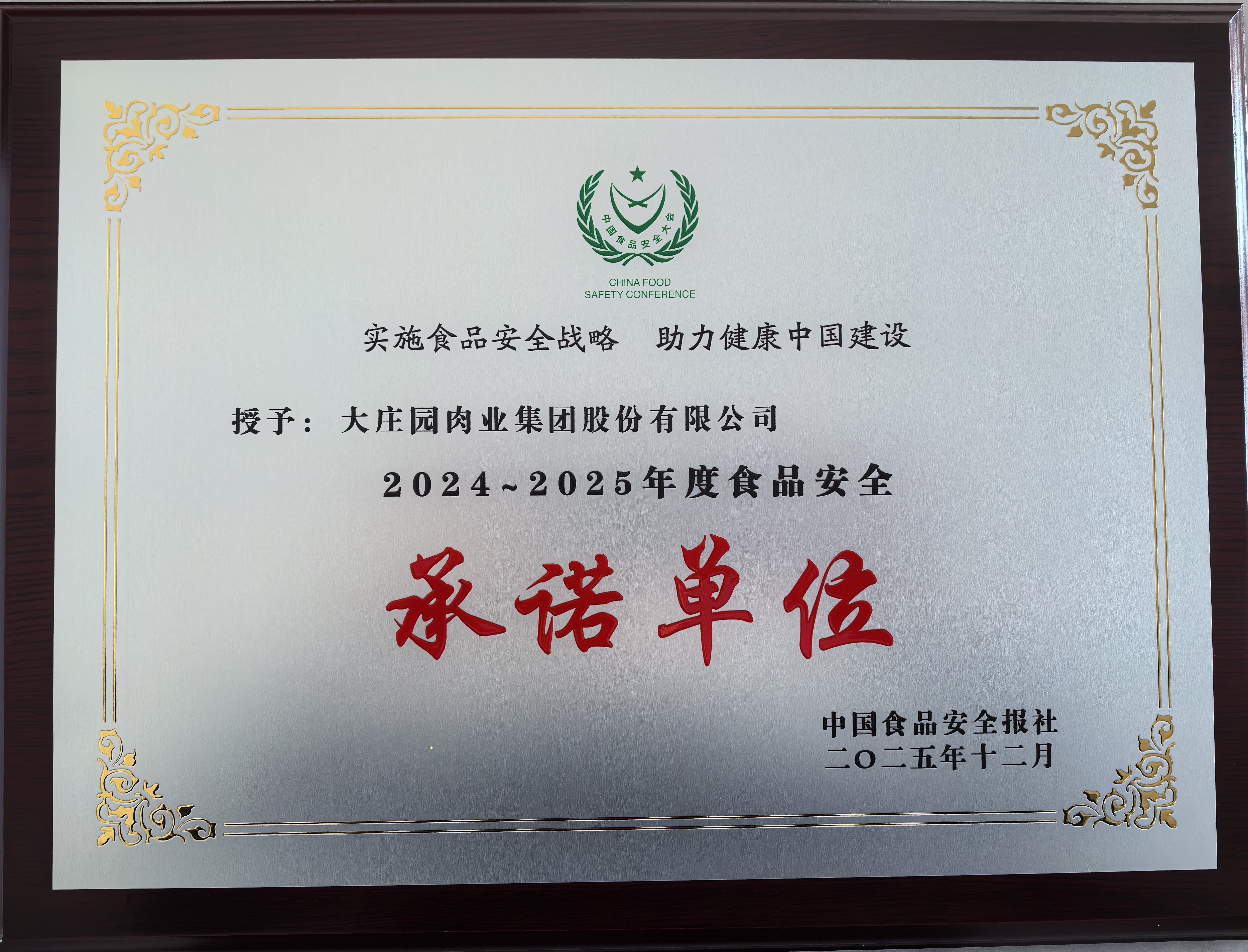 大莊園集團榮膺第二十一屆中國食品安全大會兩項榮譽