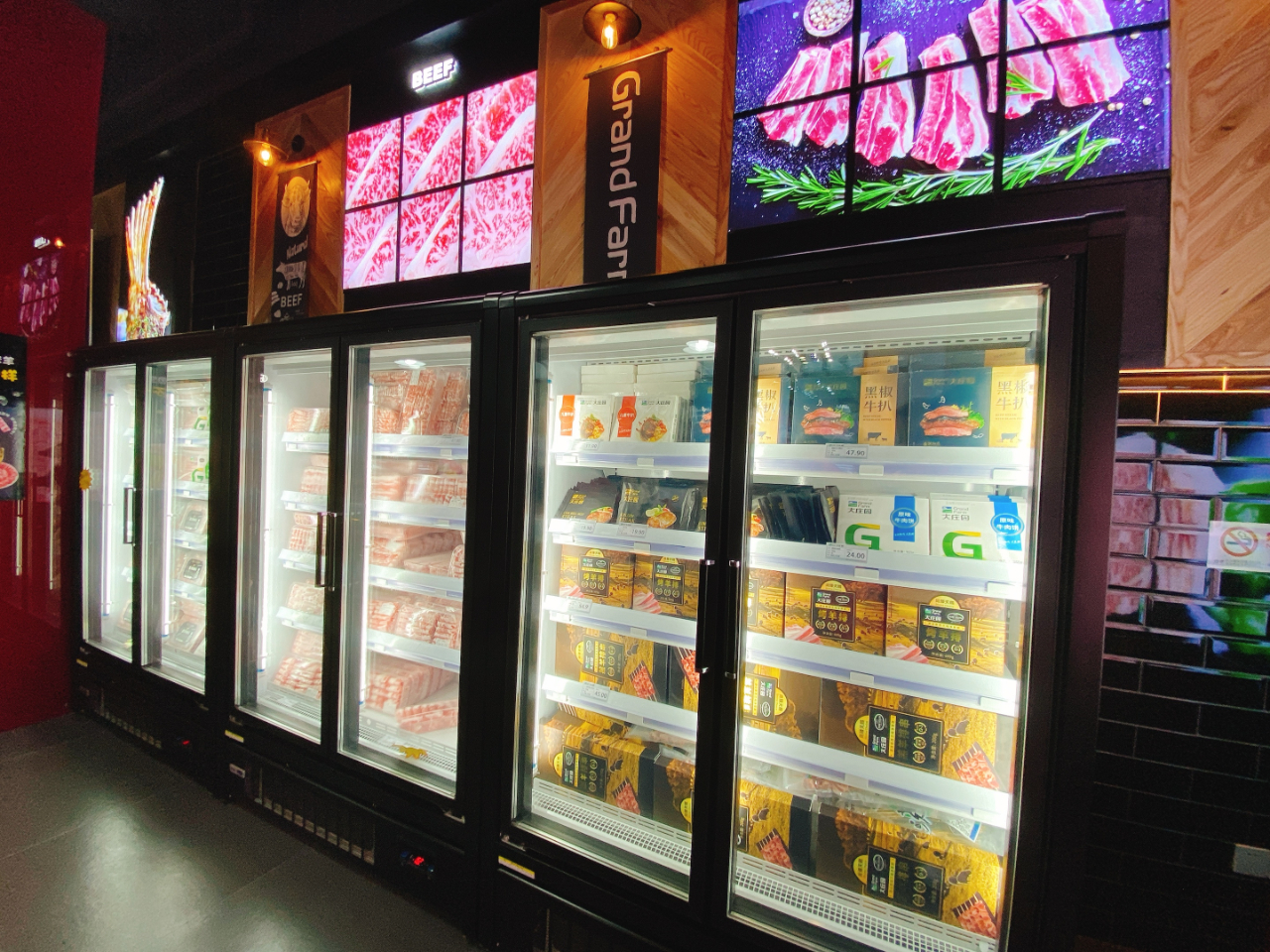 店內不僅有新鮮現切的牛羊肉產品售賣,更有高端和牛產品、速烹類產品和阿米莉亞莊園定制紅酒。